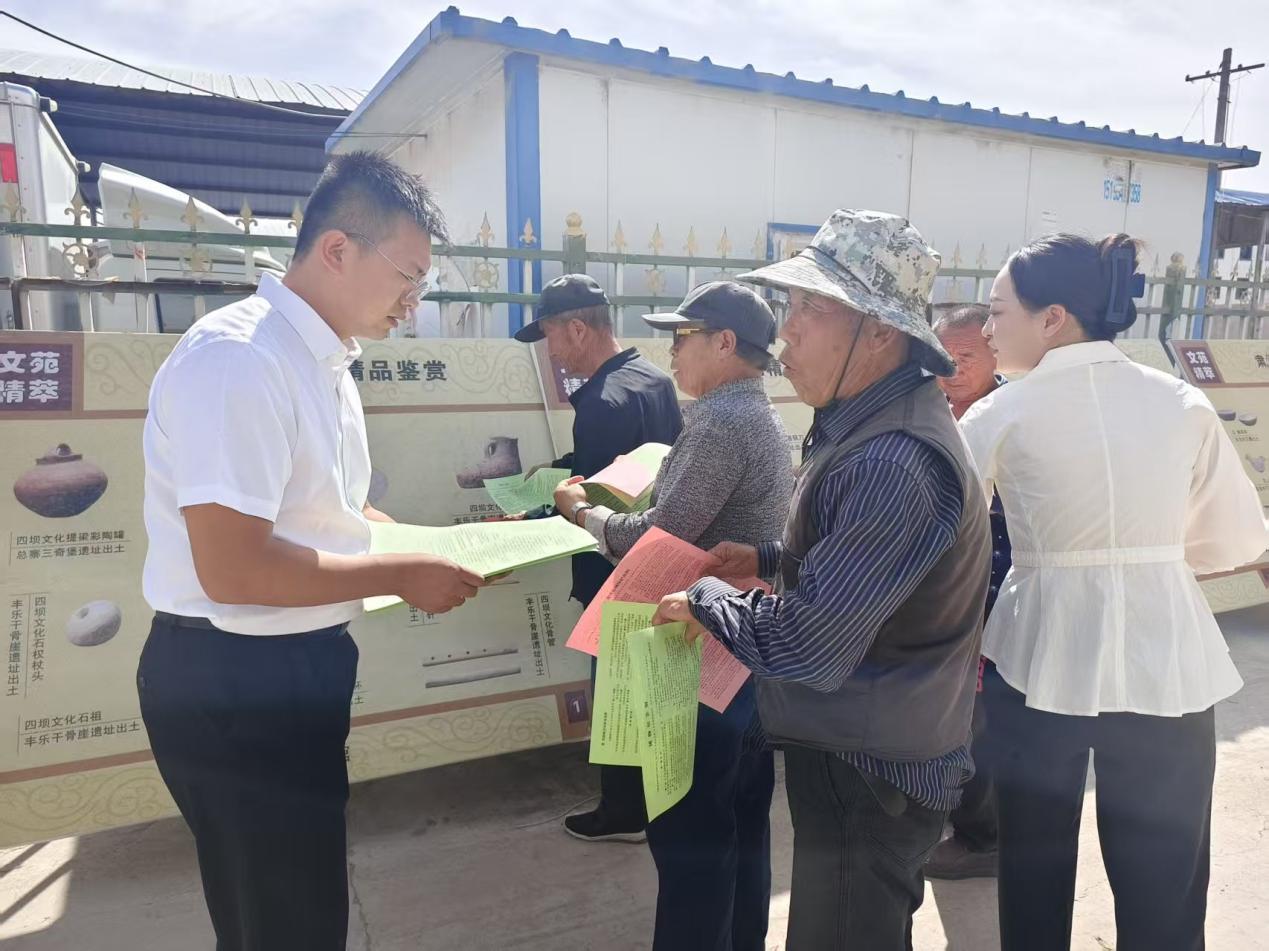 宣传互动环节中,博物馆工作人员以《文物保护法》为核心,向过往群众发放文物保护宣传手册。面对群众提出的“文物保护具体范围”“非物质文化遗产如何传承”等实际疑问,党员干部率先垂范,逐一耐心解答,用通俗语言解读文物保护的重要意义与相关政策,帮助群众建立系统的文物保护认知。