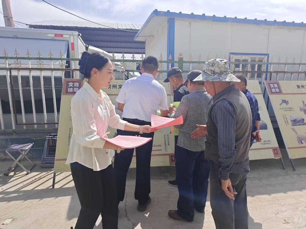 为进一步丰富基层群众精神文化生活、推动优质文化资源向基层下沉,9月10日,肃州区流动博物馆携党员服务力量走进泉湖镇,以“流动展览+互动宣传”的形式开展文化宣传活动,将兼具专业性与温度的文化服务精准送到群众“家门口”,以党员担当激活基层文化服务活力。