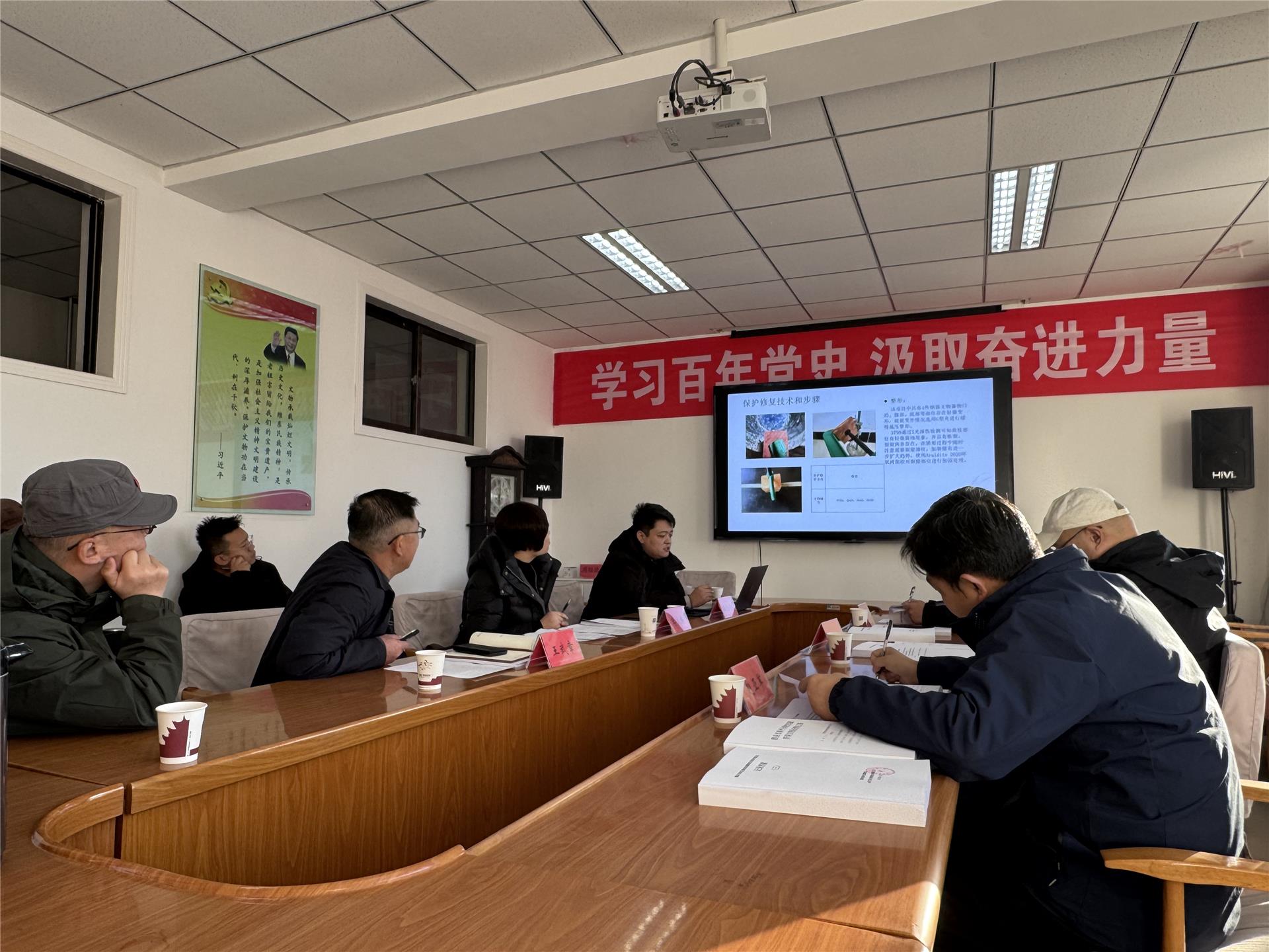会上,博物馆负责人介绍了该项目的实施背景、核心目标及前期各项工作。随后项目实施单位山东文保文物修复技术有限公司技术部副主任臧金超汇报了项目初期执行情况,详细阐述了文物清点登记、病害评估报告编制、保护修复方案落实、阶段性修复成果等。