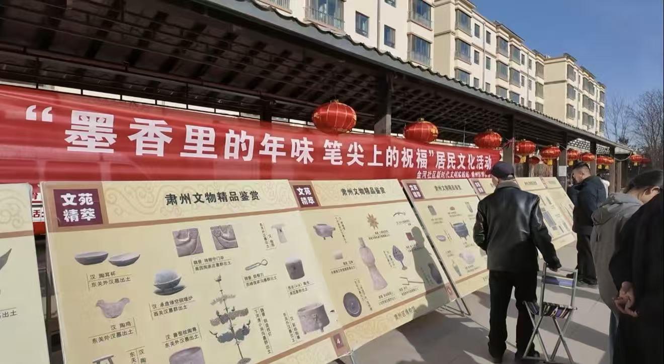 2月4日,肃州区博物馆“流动博物馆”带着浓浓的文化暖意与新春祝福走进金河社区。通过《肃州文物精品鉴赏》图片展与现场写春联两大特色活动,将跨越千年的历史文脉与寓意吉祥的传统习俗送到居民家门口,为社区生活注入醇厚的文化气息。