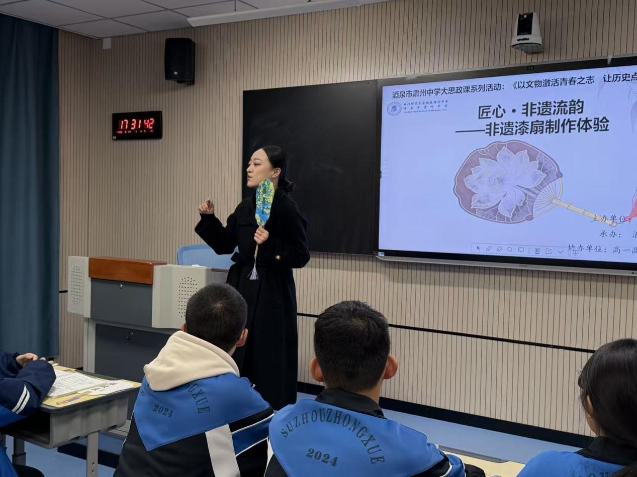 12月24日,肃州区博物馆开展的“长城风骨·漆扇流韵”主题社教活动在肃州中学圆满举行。此次活动将历史课堂与手工实践深度融合,为师生们带来了一场别开生面的文化盛宴。