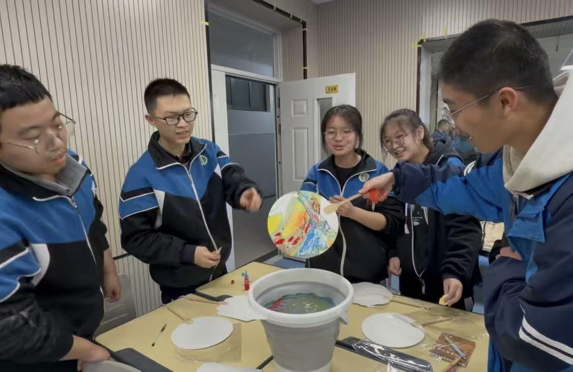 最让同学们期待的莫过于非遗漆扇制作体验。在博物馆社教老师的指导下,同学们化身“小小非遗传承人”,亲手体验传统大漆艺术的魅力。调漆、上色、勾画、晾干……每一个步骤都凝聚着专注与创造。一把把素白扇面在同学们的巧手下,绽放出绚丽多彩的图案。当看到自己亲手制作的漆扇成品时,同学们的脸上洋溢着满满的成就感。